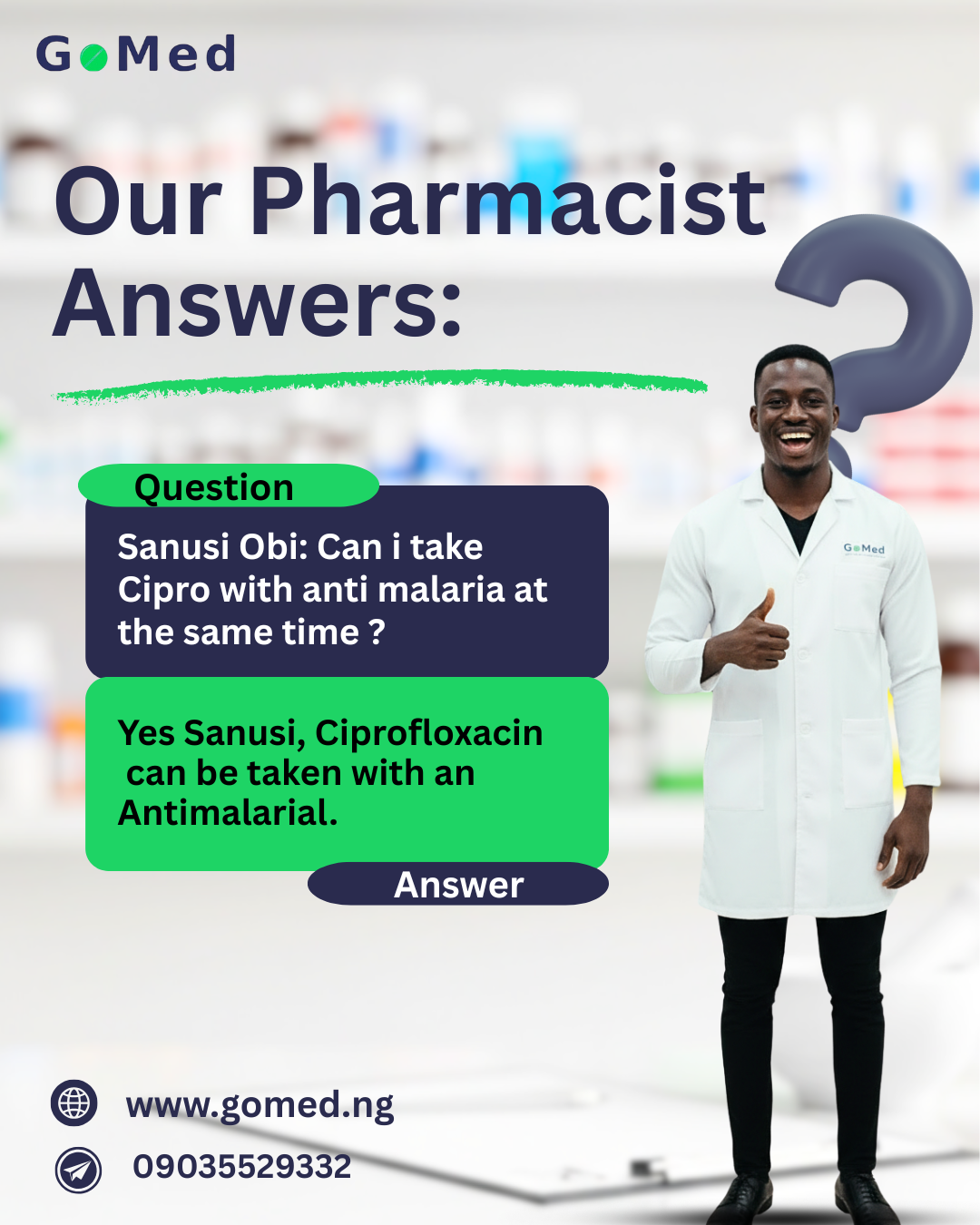 #AskAPharmacist #Healthquestions #GoMedNigeria #pharmacist