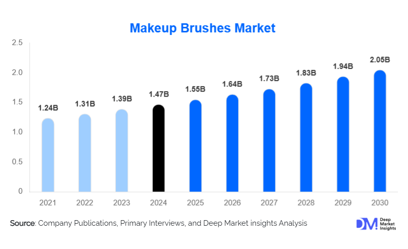 According to Deep Market Insights, the global Makeup Brushes Market size is projected to grow from USD 1.Makeup Brushes Market Billion in 2025 to reach USD 2.05 Billion by 2030, expanding at a CAGR of 5.74% during the forecast period (2025–2030).