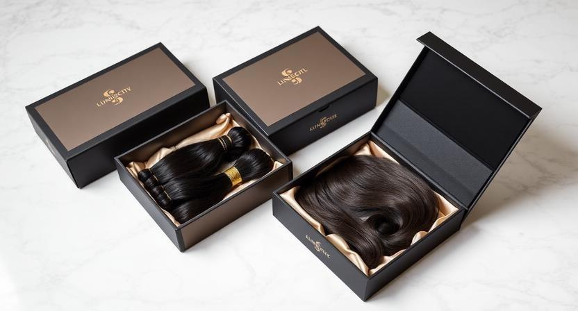 Rigid boxes offer strength and elegance, making them ideal for luxury hair extensions. Kraft materials, when finished properly, add an eco-luxury appeal that modern consumers appreciate. The right material ensures durability while maintaining a refined look.