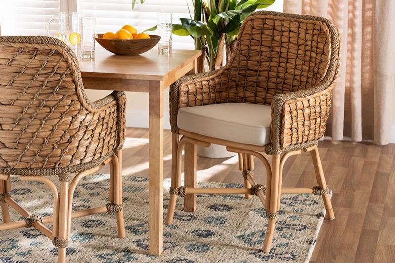 Definition: Rattan dining chairs are seats with woven rattan (natural or synthetic) on a wood or metal frame. They vary by weave density, cushionation and finish.