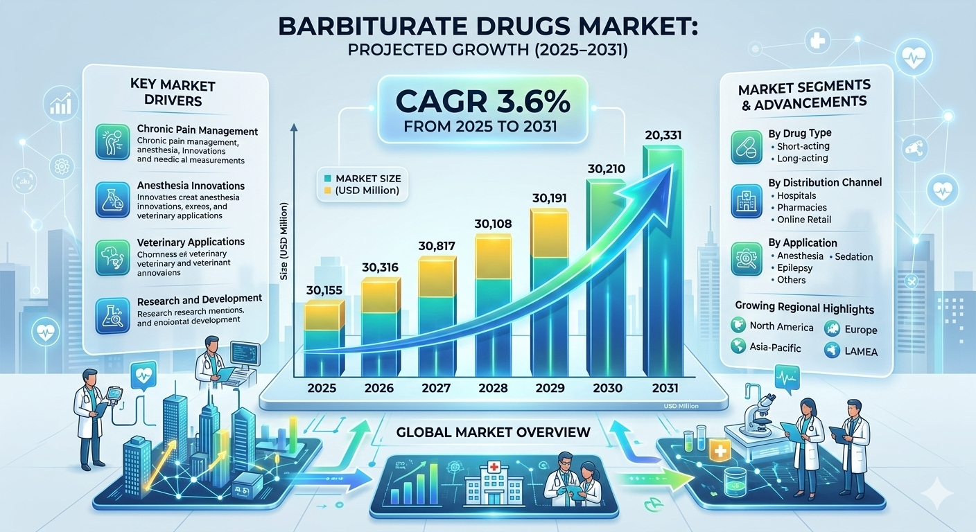 The Barbiturate Drugs Market is projected to register a CAGR of 3.6% from 2025 to 2031, expanding from US$ XX million in 2024 to US$ XX million by 2031. Barbiturate drugs continue to play a significant role in modern healthcare due to their strong sedative, hypnotic, and anticonvulsant properties. These drugs are widely used in critical medical situations, particularly in anesthesia, seizure control, and intensive care settings where rapid neurological suppression is required.