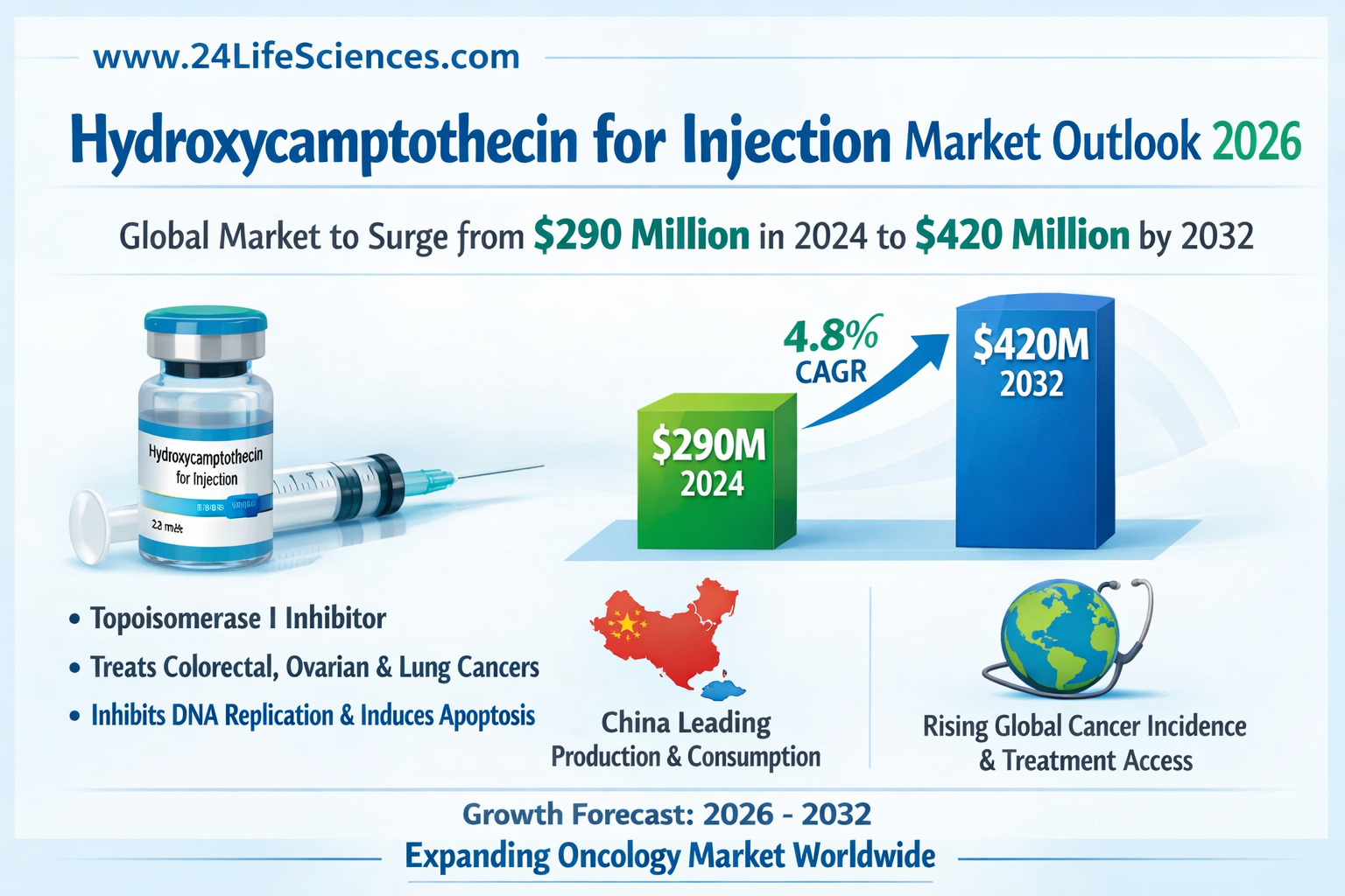 Hydroxycamptothecin for Injection Market to Reach USD 420 Million by 2032 | CAGR 4.8% Keywords: