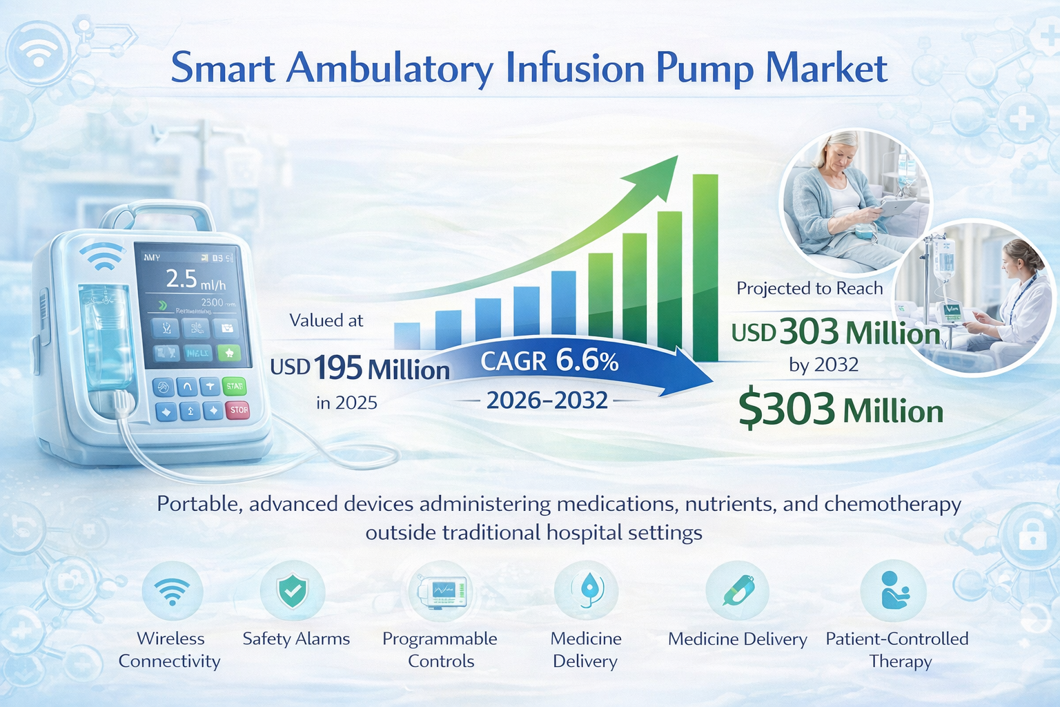 Smart Ambulatory Infusion Pump Market to Reach USD 303 Million by 2032 | CAGR 6.6%