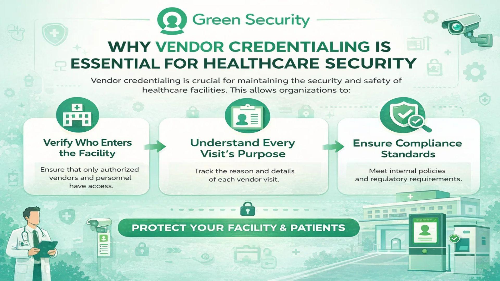With Green Security’s Vendor Credentialing solutions, healthcare organizations can automate screening, enforce compliance, and manage access efficiently.