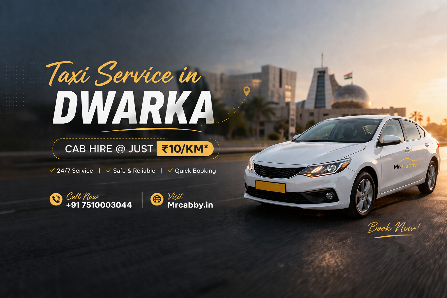 Book your next ride with Mrcabby and enjoy Dwarka travel with confidence.