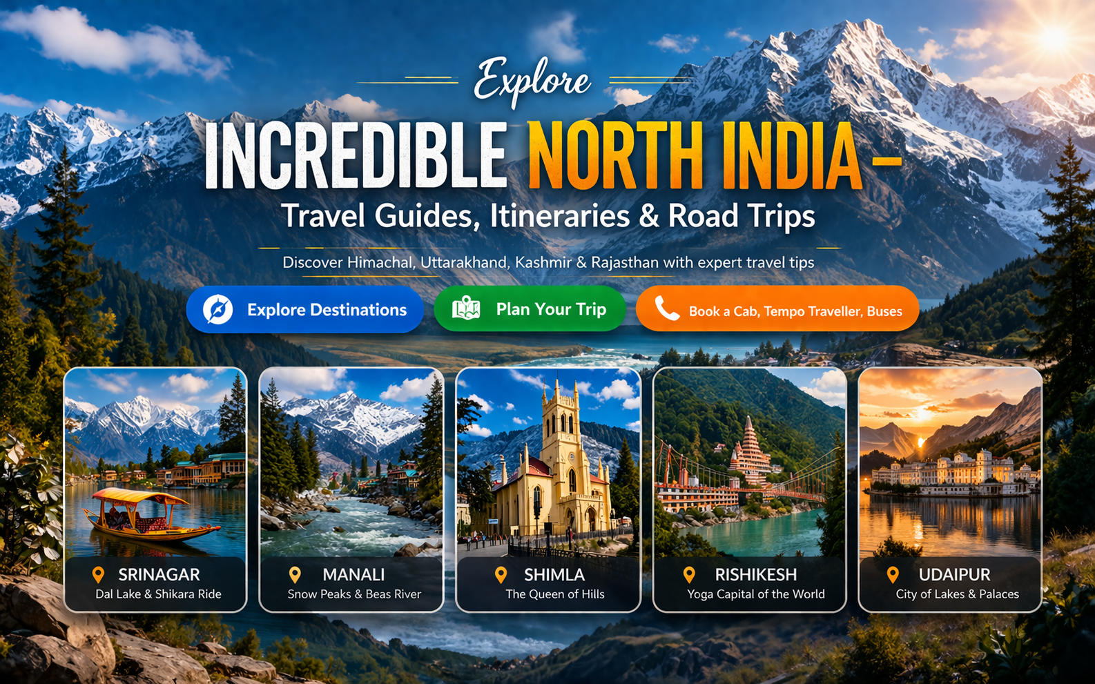 Whether you are looking for a peaceful hill station getaway, a spiritual tour, or a cultural exploration, North India has everything. Popular destinations like Manali, Shimla, Mussoorie, Rishikesh, Haridwar, Jaipur, Agra, and Delhi attract travelers throughout the year. With Incredible North India, you get customized itineraries that include transport, accommodation, sightseeing, and meals—everything you need for a hassle-free trip.
