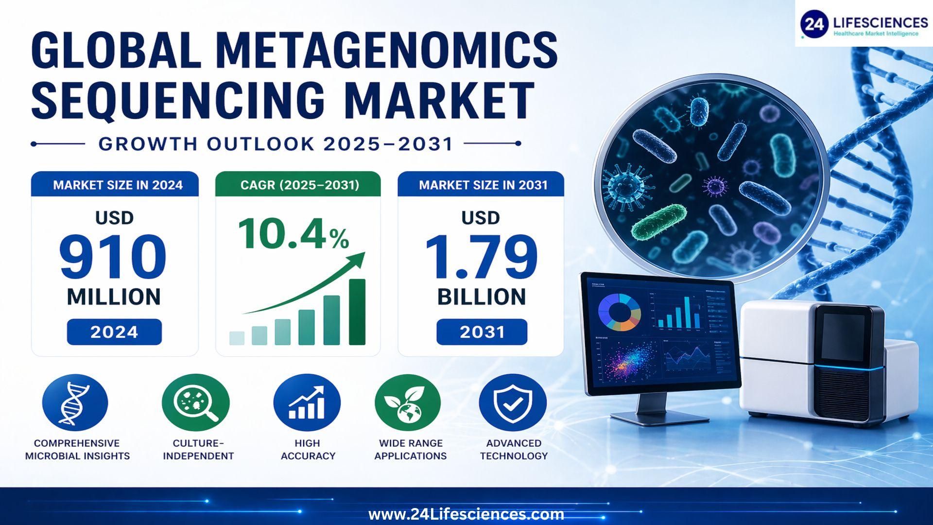 According to a newly published market research report by 24LifeSciences, global metagenomics sequencing market was valued at USD 910 million in 2024 and is projected to reach USD 1.79 billion by 2031, growing at a compound annual growth rate (CAGR) of 10.4% during the forecast period 20252031.