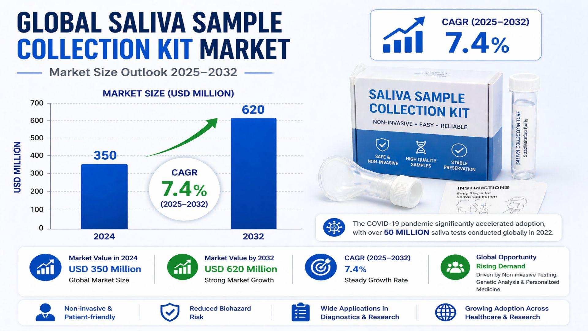 Global saliva sample collection kit market growth outlook with 7.4% CAGR (2025–2032)