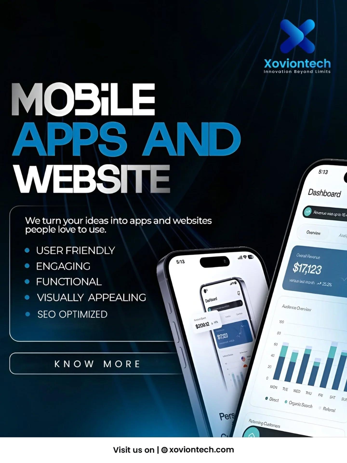 Turn your innovative ideas into powerful digital experiences with Xoviontech, a trusted name in mobile app and website development. We specialize in designing and developing user-friendly, engaging, and fully functional mobile applications and responsive websites that help businesses grow in today’s competitive digital landscape. Our team focuses on creating visually appealing interfaces combined with smooth performance to ensure the best user experience across all devices.