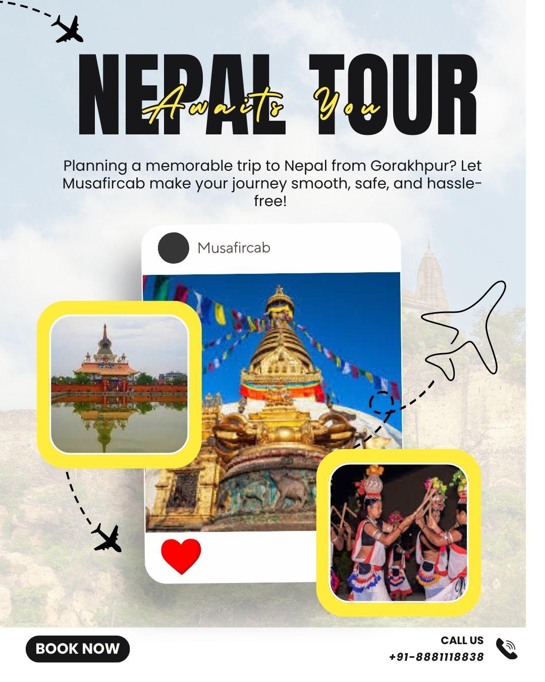 Planning a memorable trip to Nepal from Gorakhpur? Let Musafircab make your journey smooth, safe, and hassle-free!