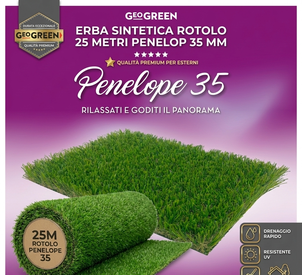 Erba Sintetica Rotolo 25 Metri Penelope 35 mm – Qualità Premium per Esterni