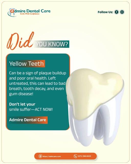 Yellow teeth aren’t just about appearance… they can be a sign of deeper oral health concerns Plaque build-up, poor hygiene, and neglected care can lead to issues like bad breath, cavities, and gum disease over time. đ‘»đ’‰đ’† 𝒈𝒐𝒐𝒅 𝒏𝒆𝒘𝒔? A healthy, confident smile starts with simple habits and timely care. Don’t wait for small signs to turn into bigger problems; take action today. 📞 đ—•đ—Œđ—Œđ—ž đ˜†đ—Œđ˜‚đ—ż đ—°đ—Œđ—»đ˜€đ˜‚đ—čđ˜đ—źđ˜đ—¶đ—Œđ—» đ—»đ—Œđ˜„ đ—źđ—»đ—± đ—Žđ—¶đ˜ƒđ—Č đ˜†đ—Œđ˜‚đ—ż 𝘀đ—șđ—¶đ—čđ—Č đ˜đ—”đ—Č 𝗰𝗼𝗿đ—Č đ—¶đ˜ đ—±đ—Č𝘀đ—Č𝗿𝘃đ—Č𝘀! https://admcare.com/service/teeth-whitening-woodbridge/