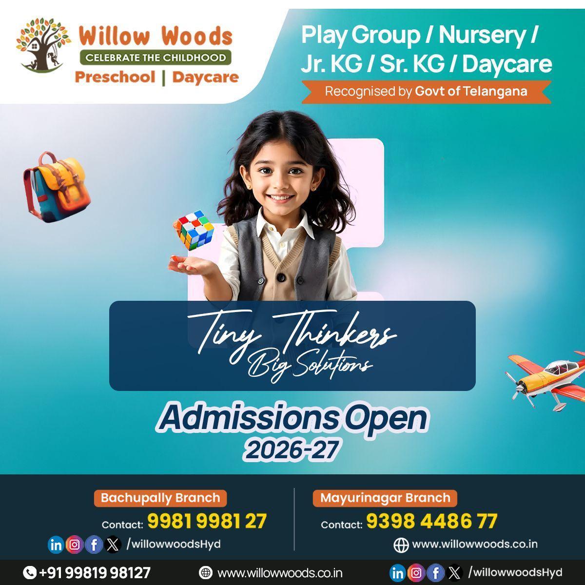Find the best day care in Bachupally with Willow Woods Preschool & Daycare. Our daycare offers a safe, nurturing, and engaging environment for children aged 18 months and above, with extended hours suitable for working parents. We focus on holistic development through play-based activities, storytelling, and structured routines that support social, emotional, and cognitive growth. With experienced caregivers, CCTV-enabled security, and child-friendly facilities, Willow Woods ensures peace of mind for parents. Convenient location, personalized care, and trusted early childcare services make us a top choice. Enroll today.
